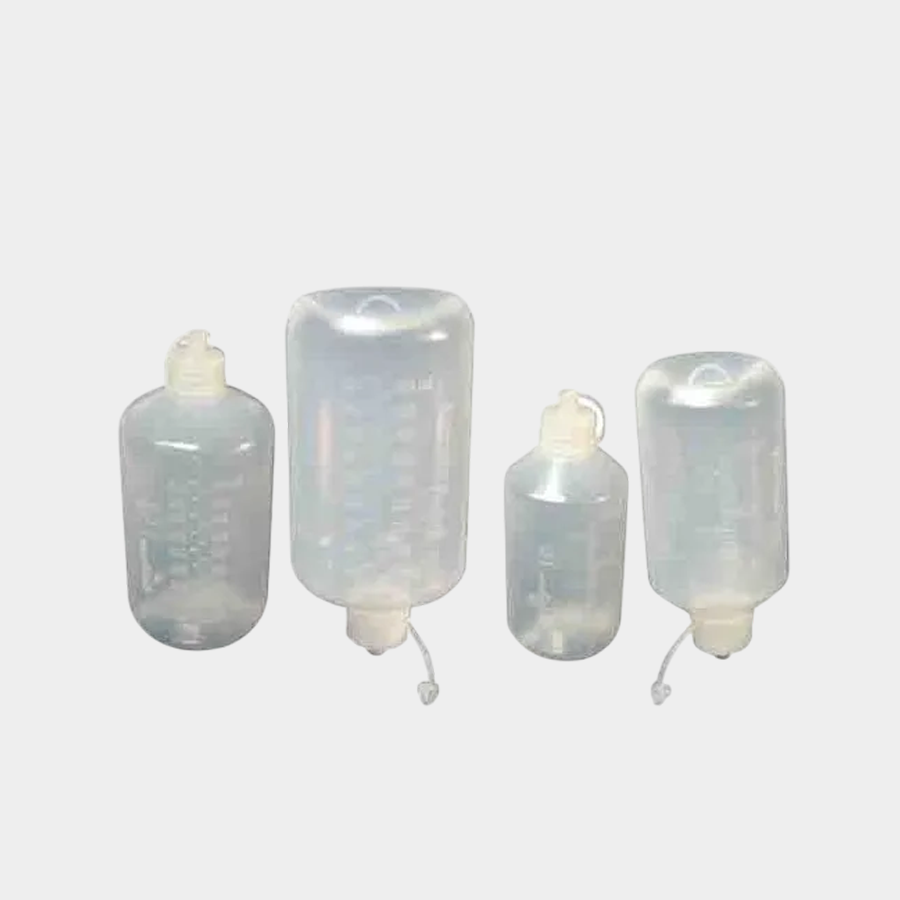 Fabricado à base de Polietileno (PE). Todas as matérias primas utilizadas, atendem a regulamentação FDA (Fuud And Drug Administration) Graduação de 10 em 10 ML Adaptável aos equipos de nutrição enteral.